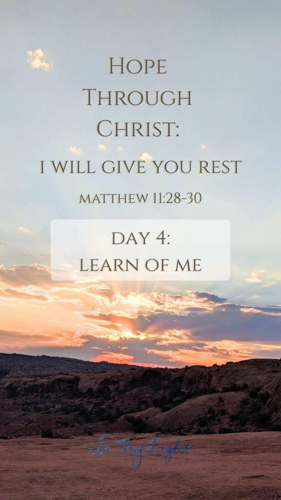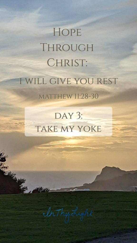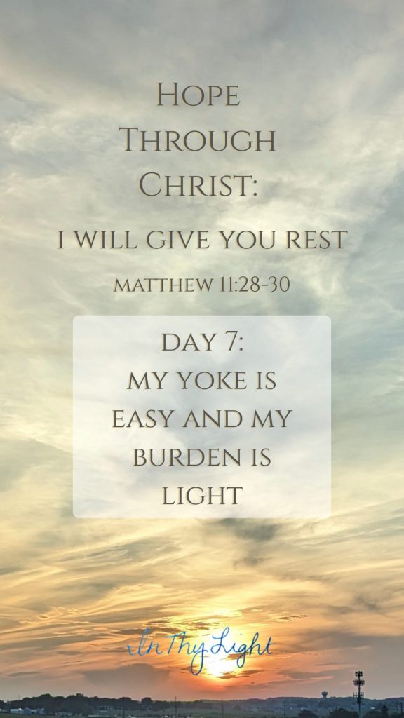 “Come Unto Me, all ye that labor and are heavy laden, and I will give you rest. Take my yoke upon you, and learn of me; for I am meek and lowly in heart: and ye shall find rest unto your souls. For my yoke is easy, and my burden is light.”